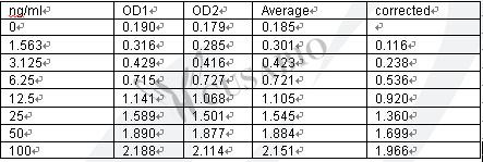 - One vial standard (1 x 100 μl) ---Dilute a bottle of the standard at dilution series, read the OD values, and then draw a standard curve.