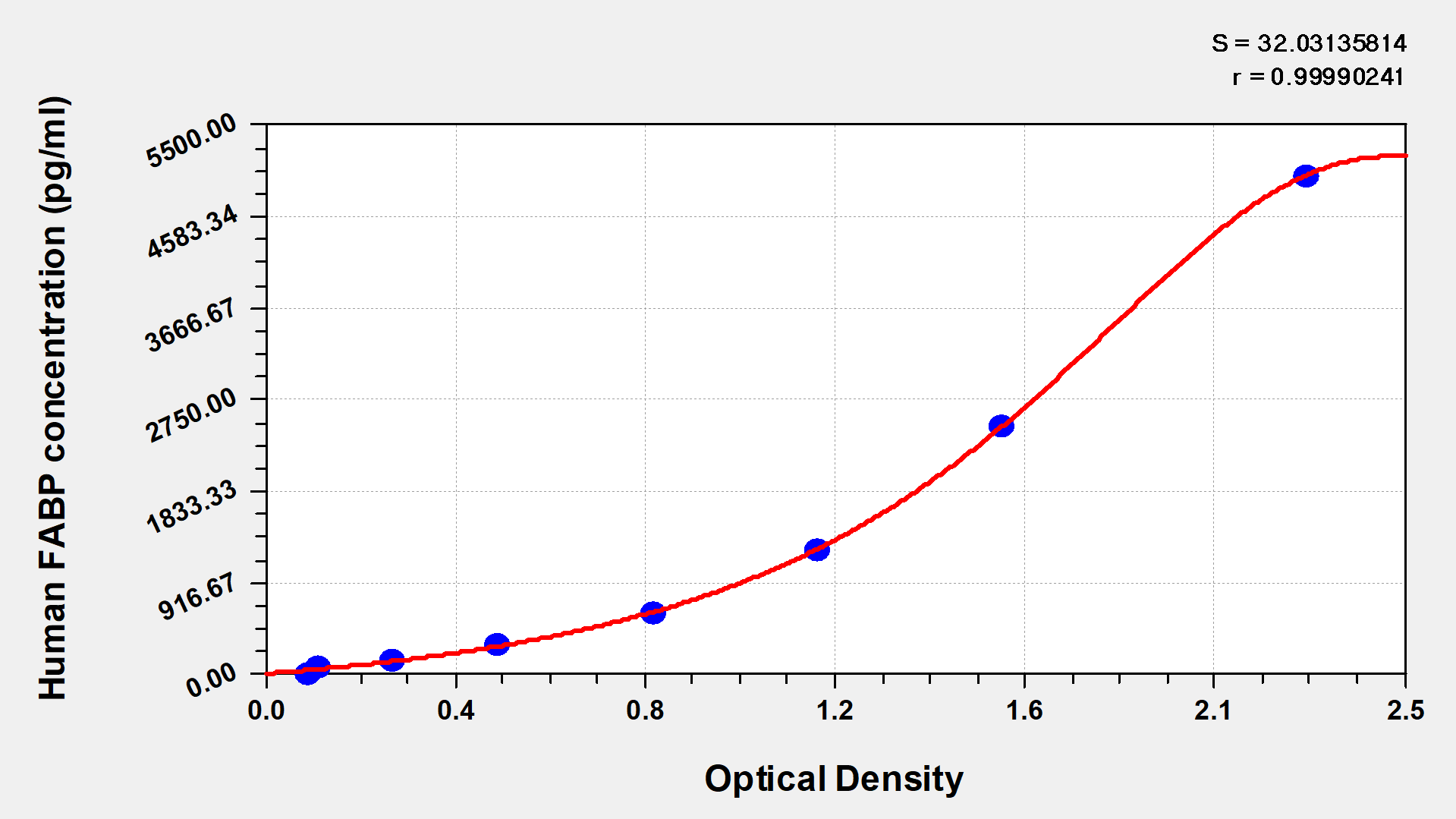 To assess the linearity of the assay, samples were spiked with high concentrations of human FABP in various matrices and diluted with the Sample Diluent to produce samples with values within the dynamic range of the assay.