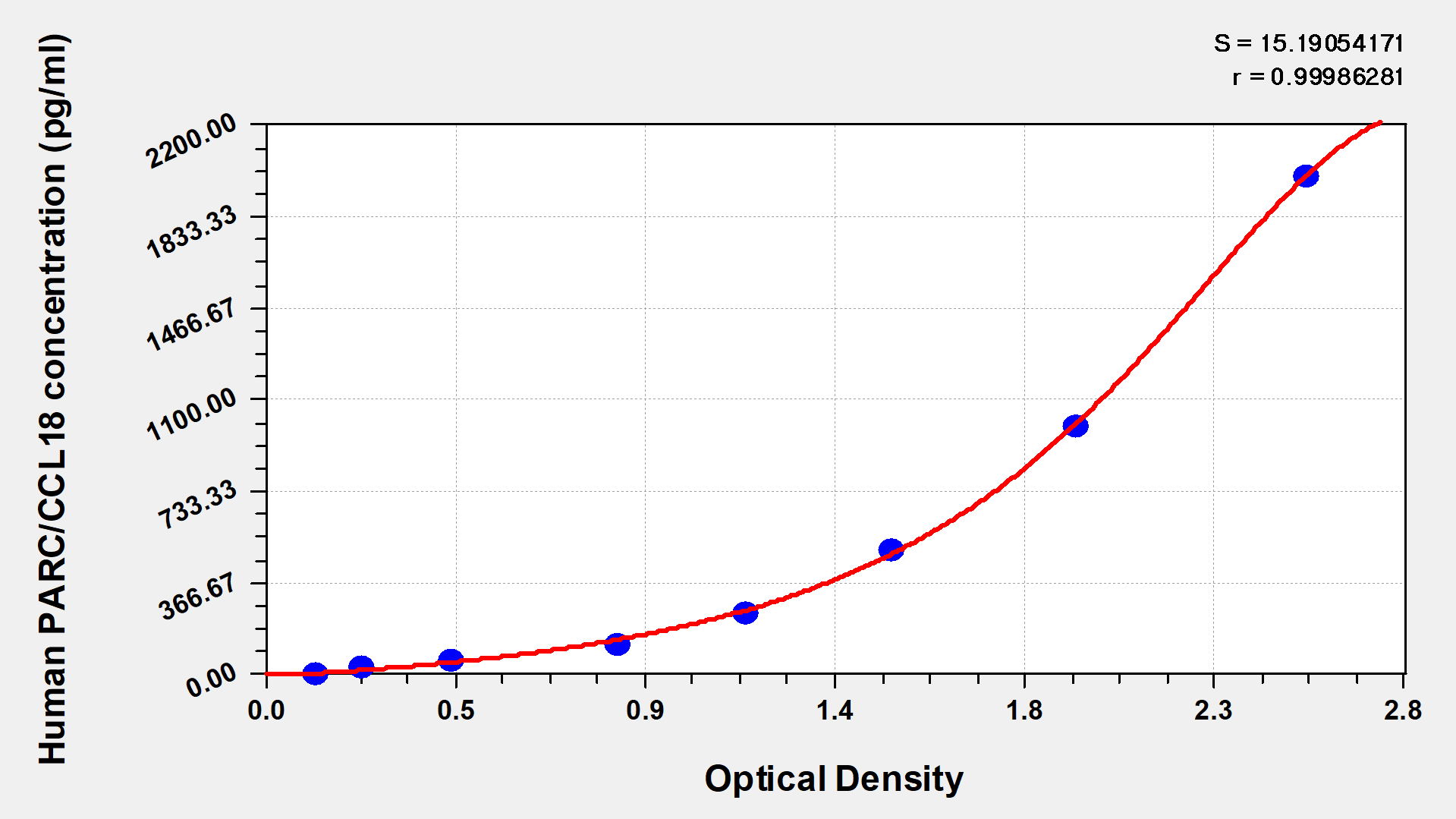 To assess the linearity of the assay, samples were spiked with high concentrations of human PARC/CCL18 in various matrices and diluted with the Sample Diluent to produce samples with values within the dynamic range of the assay.