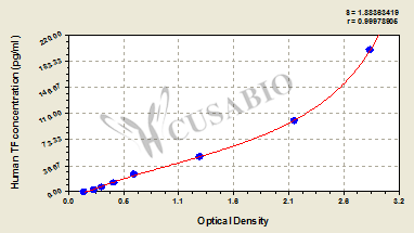 線性度:To assess the linearity of the assay, samples were spiked with high concentrations of human TF in various matrices and diluted with the Sample Diluent to produce samples with values within the dynamic range of the assay. Sample Serum(n=4) 1:1 Average % 96 Range % 92-100 1:2 Average % 88 Range % 82-93 1:4 Average % 101 Range % 98-104 1:8 Average % 94 Range % 89-99