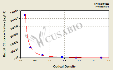 線性度:To assess the linearity of the assay, samples were spiked with high concentrations of rabbit C3 in various matrices and diluted with the Sample Diluent to produce samples with values within the dynamic range of the assay. Sample Serum(n=4) 1:1000 Average % 97 Range % 91-110 1:2000 Average % 89 Range % 82-99 1:4000 Average % 95 Range % 85-99 1:8000 Average % 91 Range % 87-98