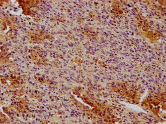 IHC image of CSB-MA004888A1m diluted at 1:100 and staining in paraffin-embedded human spleen tissue performed on a Leica BondTM system. After dewaxing and hydration, antigen retrieval was mediated by high pressure in a citrate buffer (pH 6.0). Section was blocked with 10% normal goat serum 30min at RT. Then primary antibody (1% BSA) was incubated at 4°C overnight. The primary is detected by a biotinylated secondary antibody and visualized using an HRP conjugated SP system.