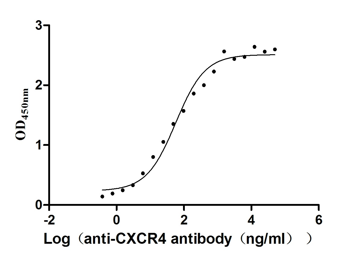 Measured by its binding ability in a functional ELISA. Immobilized Human CXCR4 at 10 μg/ml can bind Anti-CXCR4 recombinant antibody (CSB-RA006254MA01HU), the EC50 is 101.7-253.6 ng/mL. Biological Activity Assay