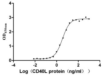 Measured by its binding ability in a functional ELISA. Immobilized CD40(CSB-MP004936HU1) at 2 μg/ml can bind CD40L, the EC50 is 3.112-3.858 ng/ml. Biological Activity Assay -