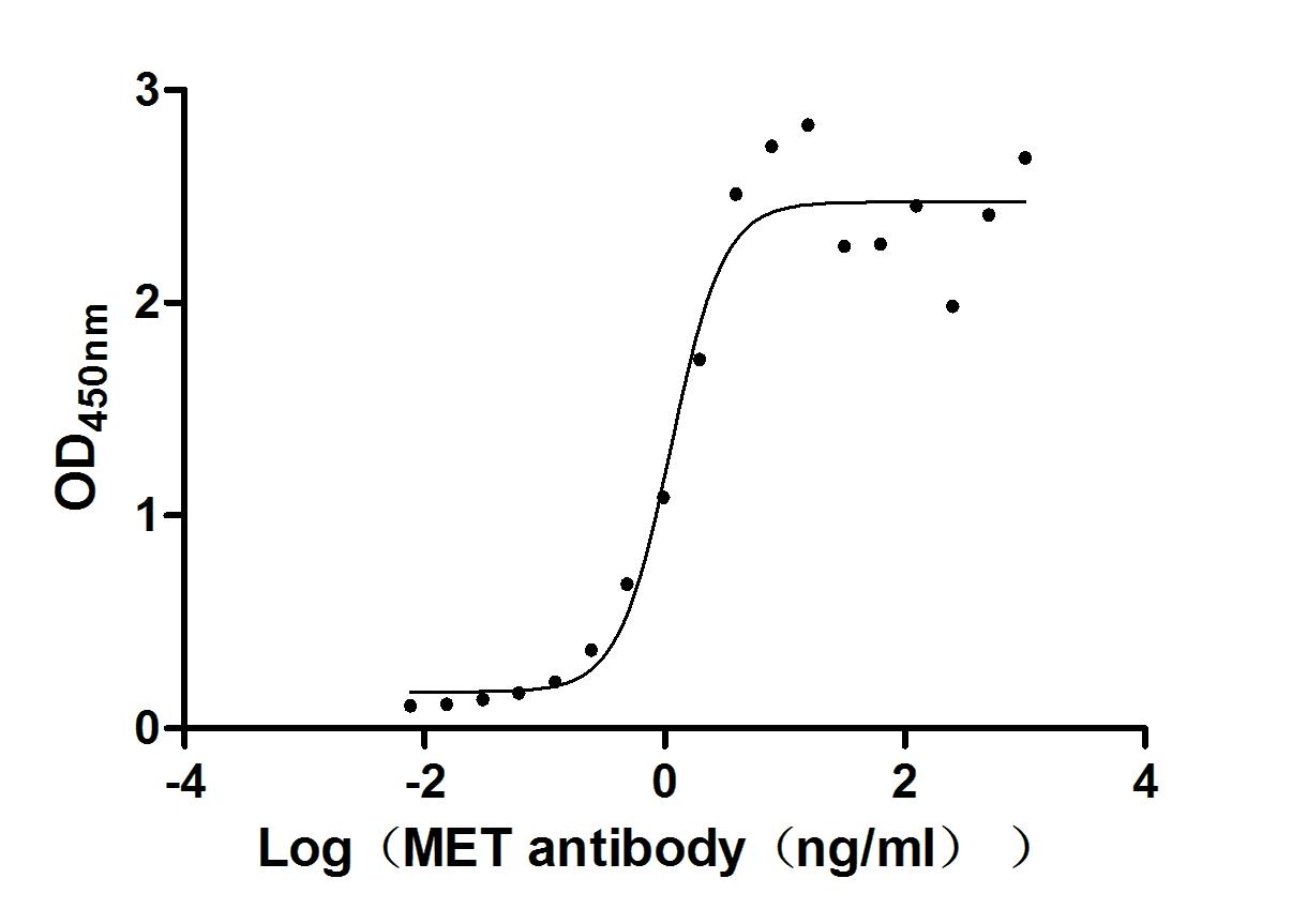 Measured by its binding ability in a functional ELISA. Immobilized MET at 2 μg/ml can bind Anti-MET recombinant antibody, the EC50 is 2.379-3.094 ng/ml. Biological Activity Assay