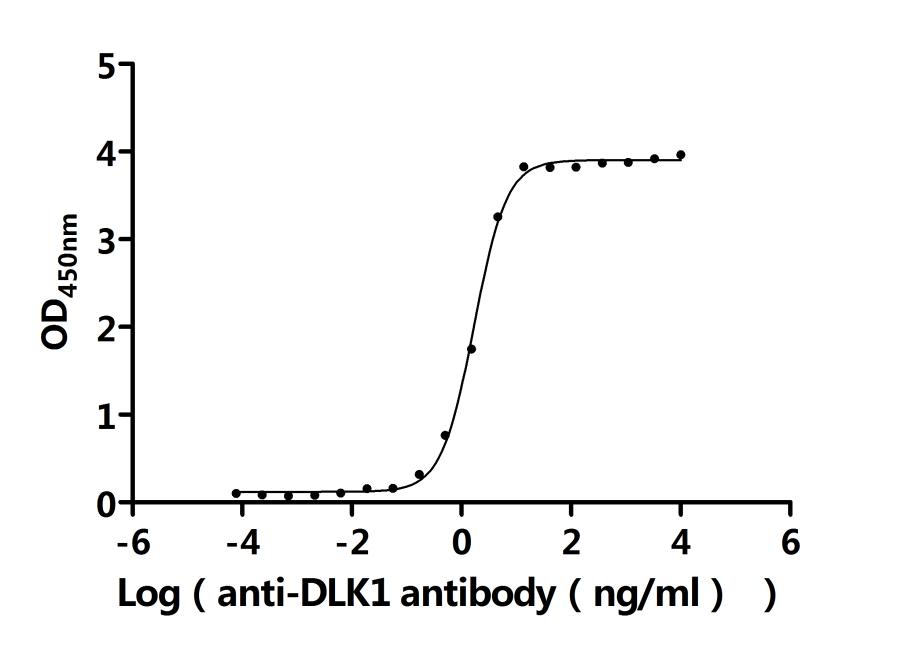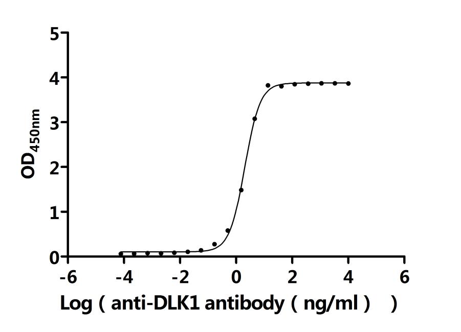 Measured by its binding ability in a functional ELISA. Immobilized Human DLK1 at 2 μg/ml can bind Anti-DLK1 recombinant antibody (CSB-RA006945MA2HU). The EC50 is 1.935-2.143 ng/mL. Biological Activity Assay -