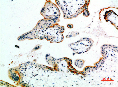 Immunohistochemical analysis of paraffin-embedded human-placenta, antibody was diluted at 1:200