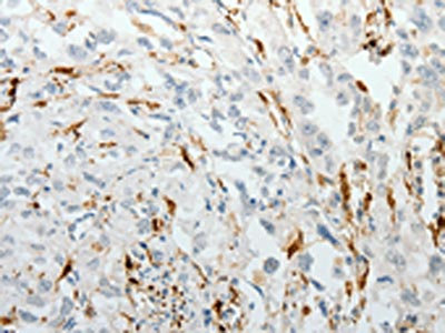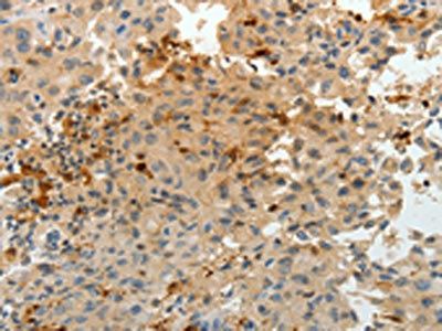 The image on the left is immunohistochemistry of paraffin-embedded Human esophagus cancer tissue using CSB-PA596700(F13A1 Antibody) at dilution 1/25, on the right is treated with fusion protein. (Original magnification: ×200)