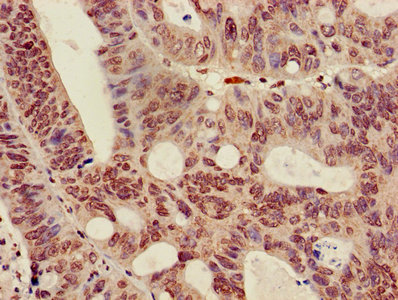 Immunohistochemistry of paraffin-embedded human colon cancer using CSB-PA010418OA36nme1HU at dilution of 1:100