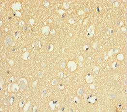 Immunohistochemistry of paraffin-embedded human brain tissue using CSB-PA021334LA01HU at dilution of 1:100