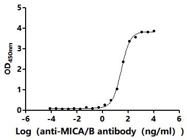 Activity: Measured by its binding ability in a functional ELISA.Immobilized Human MICB(CSB-MP5607HU1) at 2 μg/mL can bind Anti-MICA/B recombinant antibody. The EC50 is 26.77-32.93 ng/mL.