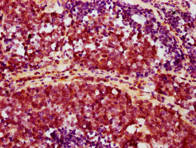 IHC image of CSB-RA001553A473phHU diluted at 1:100 and staining in paraffin-embedded human lung cancer performed on a Leica BondTM system. After dewaxing and hydration, antigen retrieval was mediated by high pressure in a citrate buffer (pH 6.0). Section was blocked with 10% normal goat serum 30min at RT. Then primary antibody (1% BSA) was incubated at 4℃ overnight. The primary is detected by a biotinylated secondary antibody and visualized using an HRP conjugated SP system.