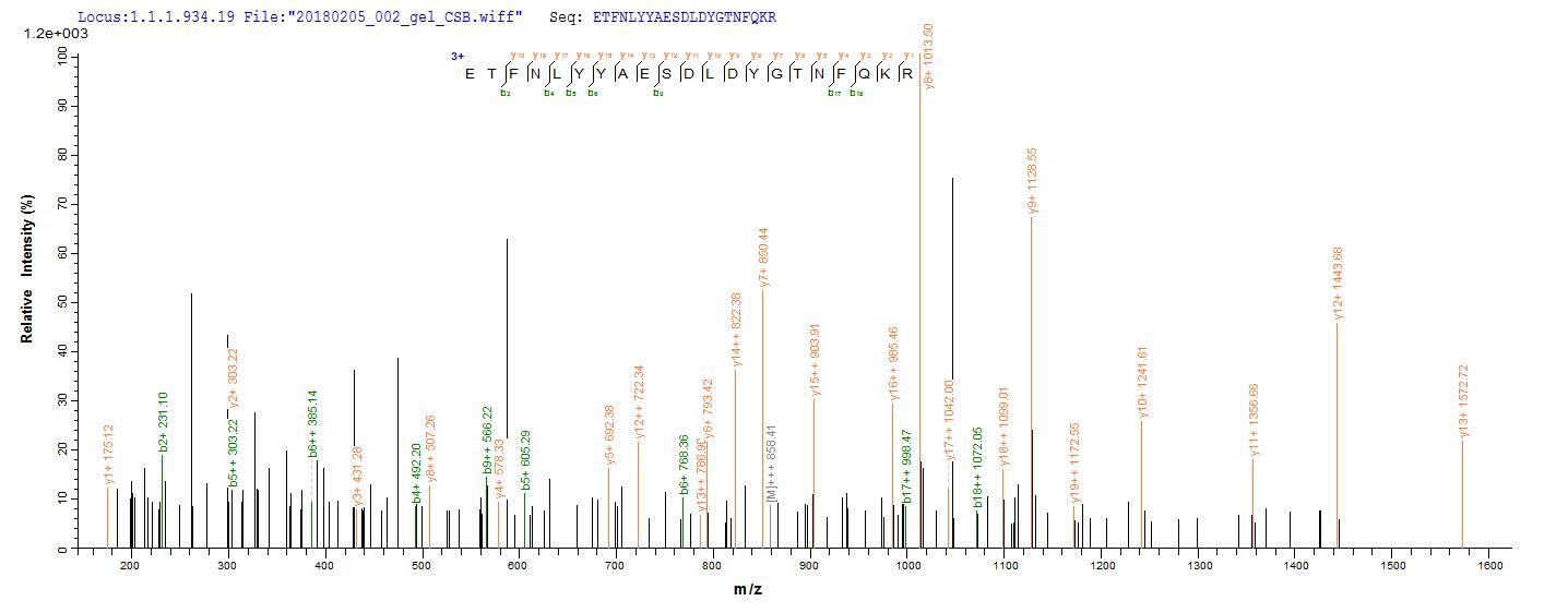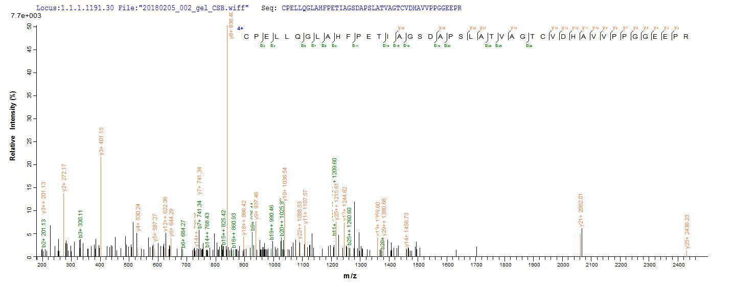 Based on the SEQUEST from database of E.coli host and target protein, the LC-MS/MS Analysis result of CSB-EP007722HU1 could indicate that this peptide derived from E.coli-expressed Homo sapiens (Human) EPHA2.