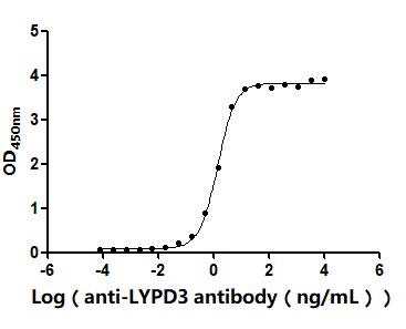 Measured by its binding ability in a functional ELISA.Immobilized Macaca fascicularis LYPD3 at 2 μg/ml can bind Anti-LYPD3 recombinant antibody (CSB-RA013263MA2HU). The EC50 is 0.8819-1.688 ng/mL. Biological Activity Assay