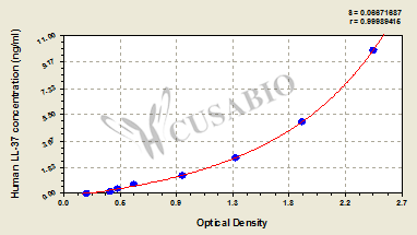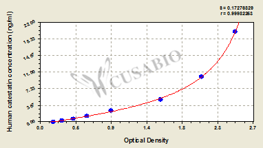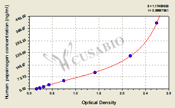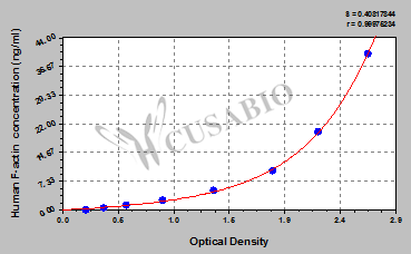 通過(guò)線性范圍來(lái)計(jì)算出實(shí)際的檢測(cè)樣本值,定量試劑盒標(biāo)準(zhǔn)曲線的相關(guān)系數(shù)R大于0.99。以CSB-E07270h(人脂聯(lián)素(ADP)ELISA Kit)為例的標(biāo)準(zhǔn)曲線。