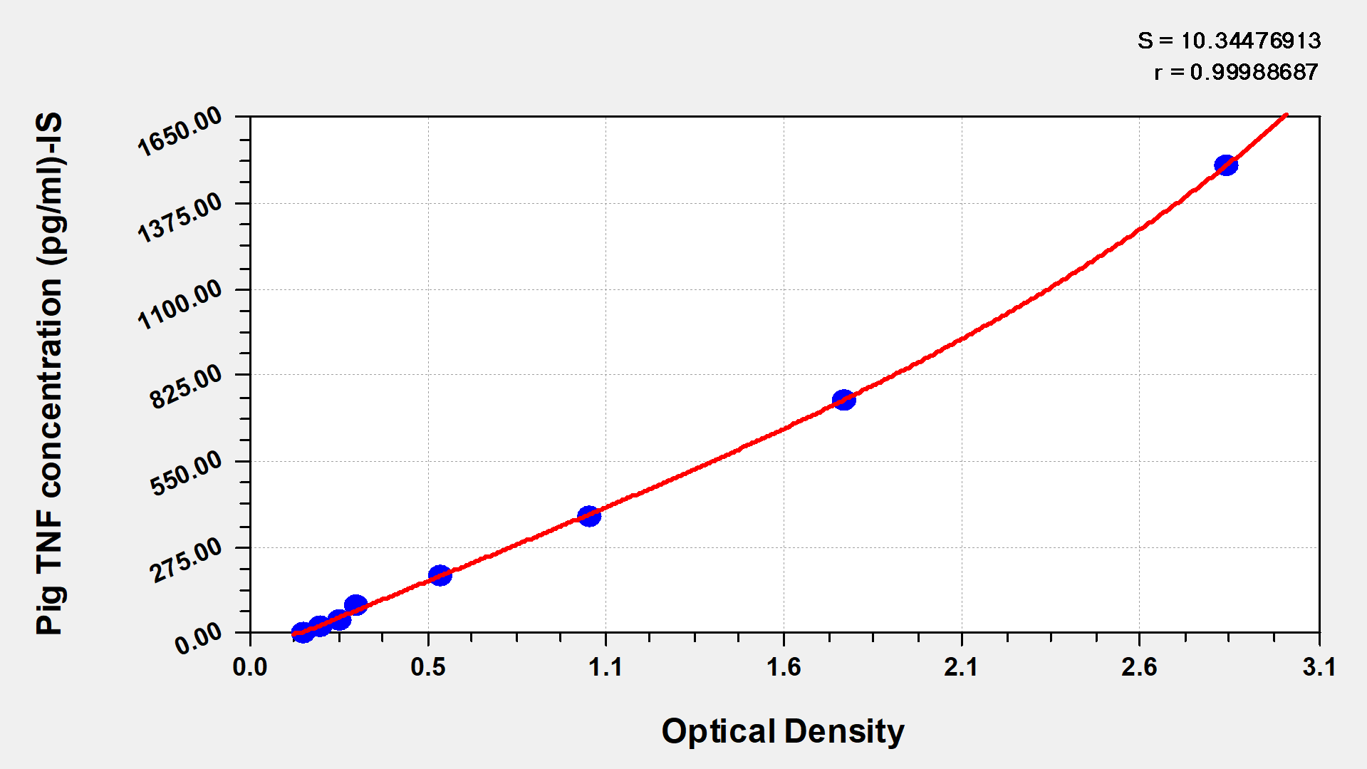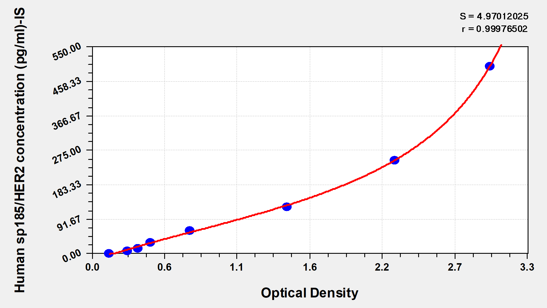通過線性范圍來計算出實際的檢測樣本值,定量試劑盒標準曲線的相關系數R大于0.99。以CSB-E07270h(人脂聯素(ADP)ELISA Kit)為例的標準曲線。
