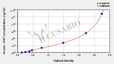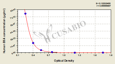 通過線性范圍來計算出實際的檢測樣本值,定量試劑盒標準曲線的相關系數R大于0.99。以CSB-E07270h(人脂聯素(ADP)ELISA Kit)為例的標準曲線。