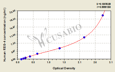 通過(guò)線性范圍來(lái)計(jì)算出實(shí)際的檢測(cè)樣本值,定量試劑盒標(biāo)準(zhǔn)曲線的相關(guān)系數(shù)R大于0.99。以CSB-E07270h(人脂聯(lián)素(ADP)ELISA Kit)為例的標(biāo)準(zhǔn)曲線。