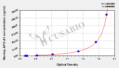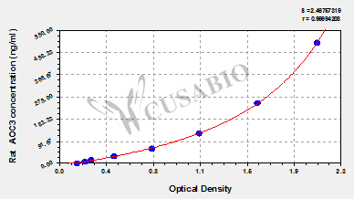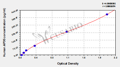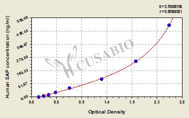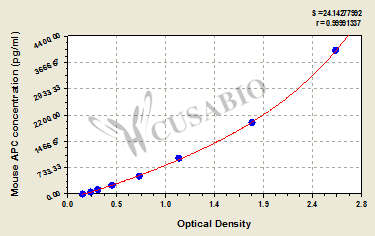 通過線性范圍來計算出實際的檢測樣本值,定量試劑盒標準曲線的相關系數R大于0.99。以CSB-E07270h(人脂聯素(ADP)ELISA Kit)為例的標準曲線。