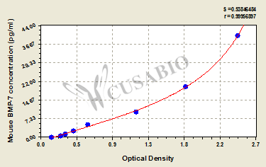 通過線性范圍來計算出實際的檢測樣本值,定量試劑盒標準曲線的相關系數R大于0.99。以CSB-E07270h(人脂聯素(ADP)ELISA Kit)為例的標準曲線。