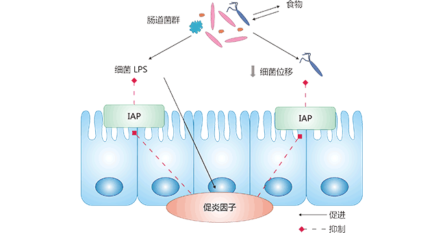 腸堿性磷酸酶(Intestinal alkaline phosphatase, ALPi)位于腸粘膜的刷狀邊緣,能夠水解單磷酸脂,是一種由腸上皮細胞表達的內源性蛋白質,不僅在粘膜和腸腔內保持活性,而且分泌到血清后也能保持活性,對維持腸道內環境平衡起到重要作用。