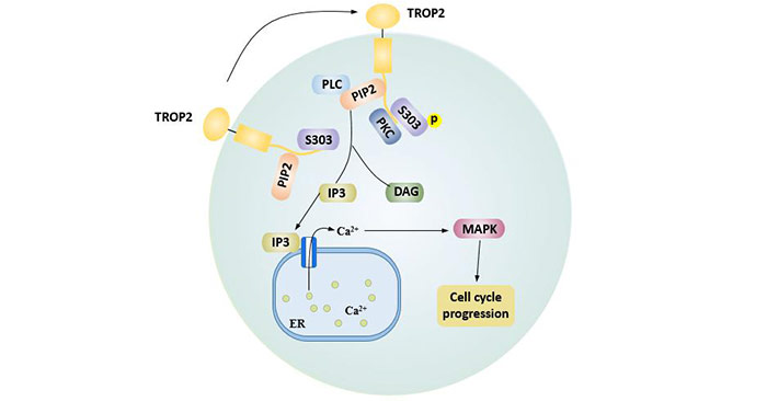 TROP2屬于TACSTD家族,是由TACSTD2基因編碼表達的細胞表面糖蛋白,又名腫瘤相關鈣離子信號轉導子2(TACSTD2)、表皮糖蛋白1(EGP-1)、胃腸腫瘤相關抗原(GA733-1)、表面標志物1(M1S1)[1]。TROP-2在多種惡性腫