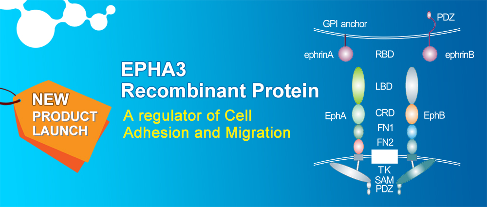 受體酪氨酸激酶(RTKs)是一類I型跨膜糖蛋白,它具有調節細胞生長、分化和遷移的功能。Eph受體家族(erythropoietin- producing human hepatocellular carcinoma)是目前為止最大的RTKs家族,該蛋白在結構上高