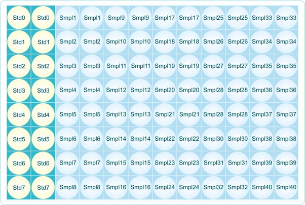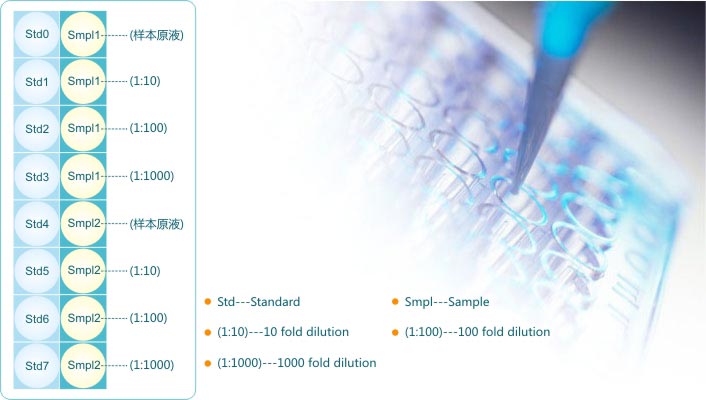 4、預(yù)實(shí)驗(yàn)確定樣本合適的稀釋倍數(shù),下面進(jìn)行正式實(shí)驗(yàn),排版如下,注意做好標(biāo)識(shí),正式實(shí)驗(yàn)操作步驟請(qǐng)參考相應(yīng)的說明書。